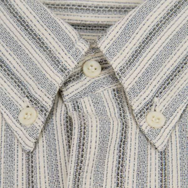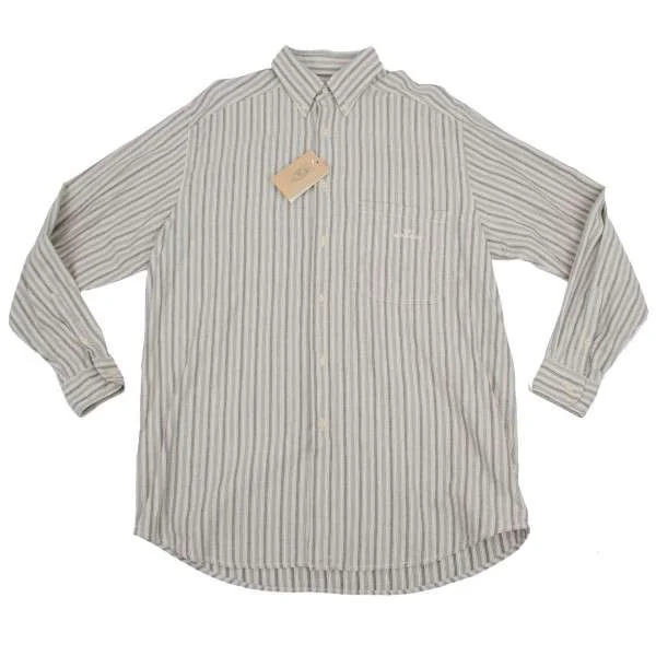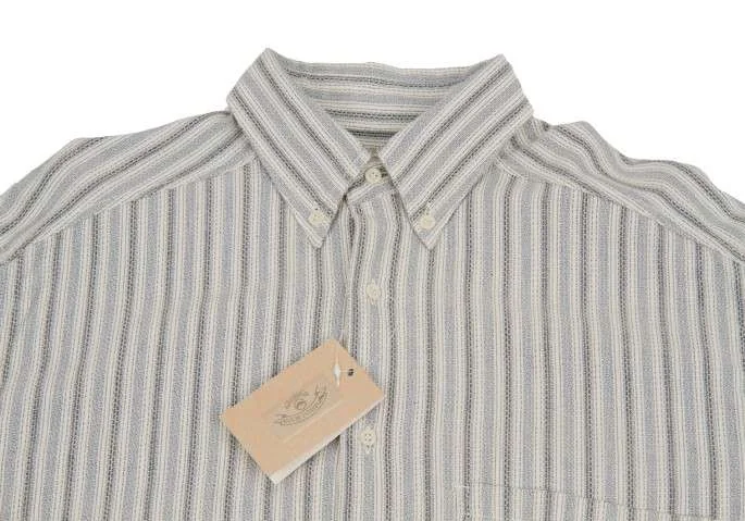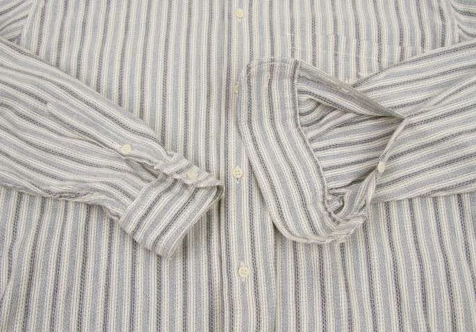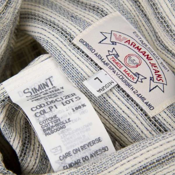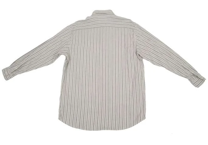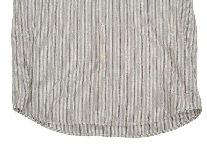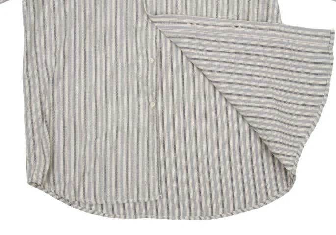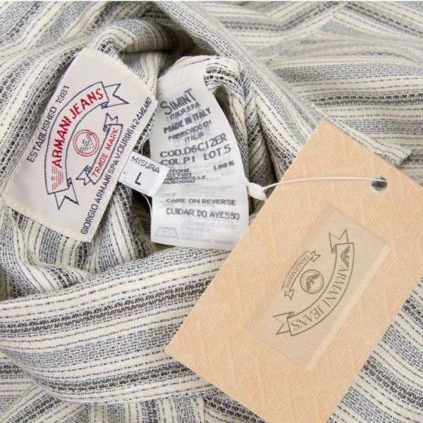 【SALE】アルマーニ ジーンズARMANI JEANS ロゴ刺繍マルチピンストライプコットンシャツ オフ白 グレー 黒L