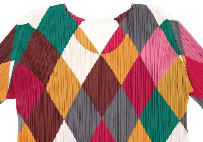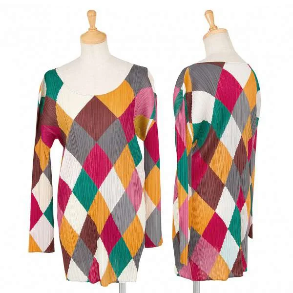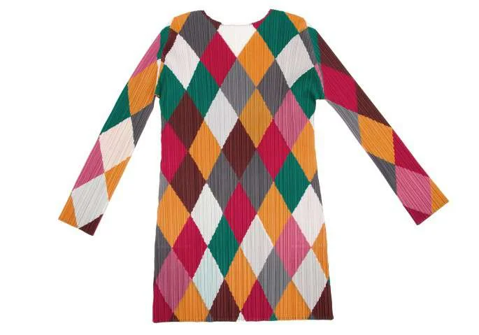 プリーツプリーズPLEATS PLEASE カラフルダイヤモンドチェックロングカットソー マルチ3