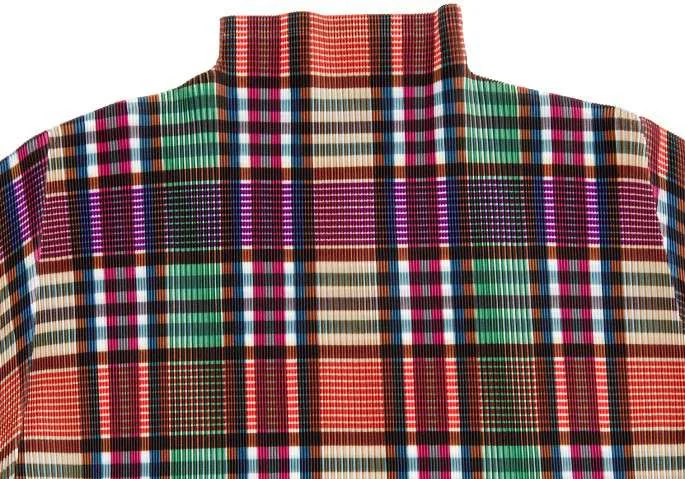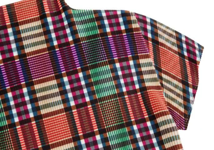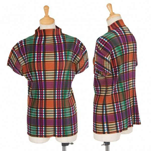 プリーツプリーズPLEATS PLEASE カラフルチェックハイネック半袖カットソー マルチ3