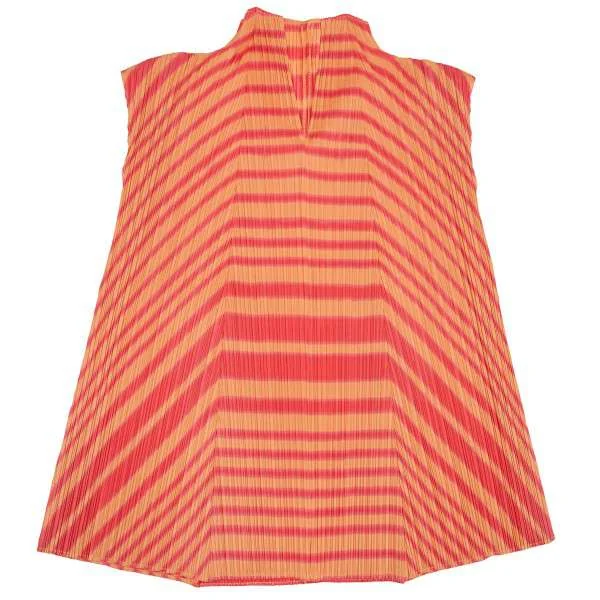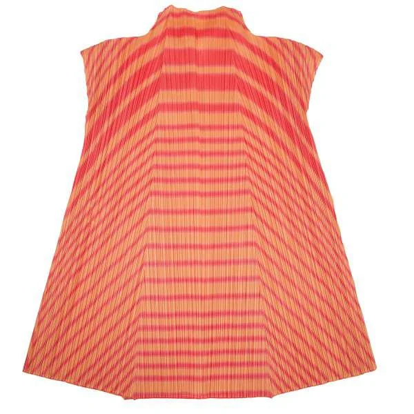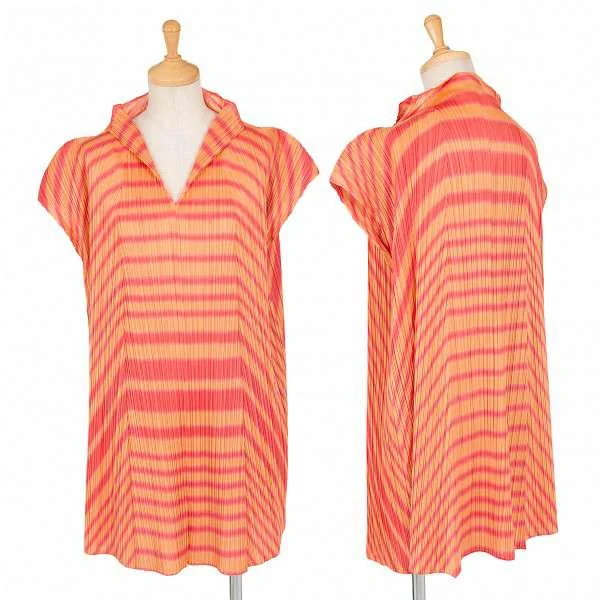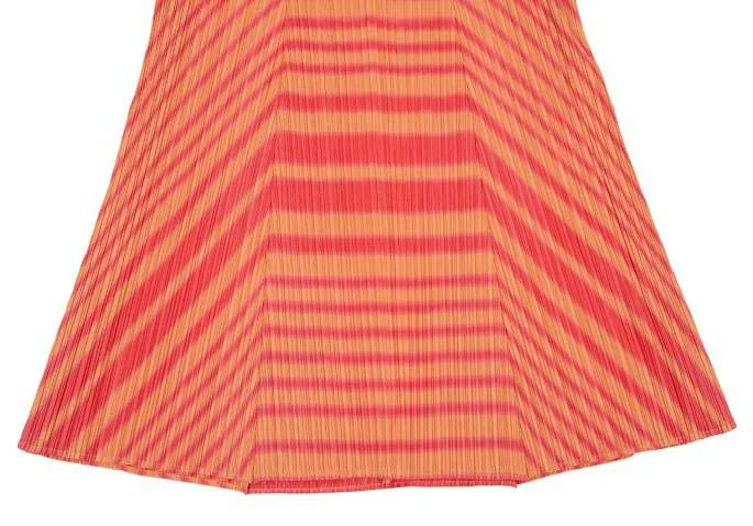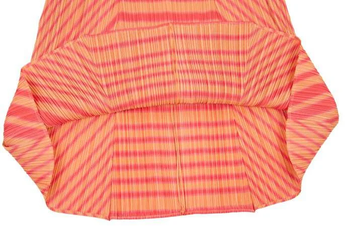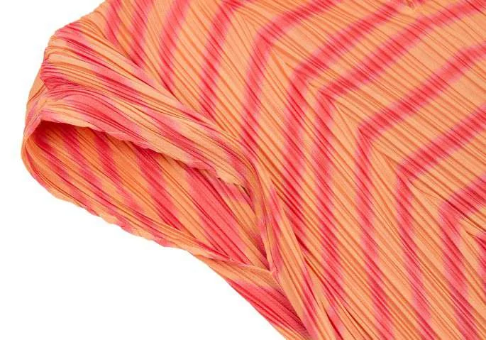 プリーツプリーズPLEATS PLEASE ぼかしストライプフレンチスリーブワンピース オレンジピンク3