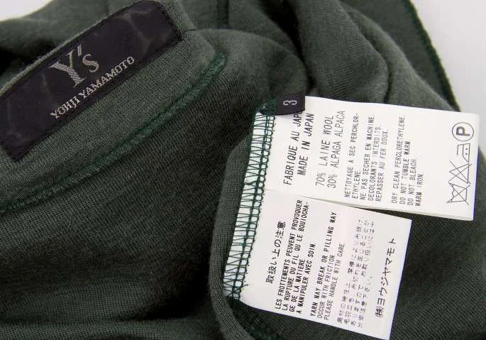 【SALE】ワイズY's スナップボタンアルパカ混ウールカットソー モスグリーン3