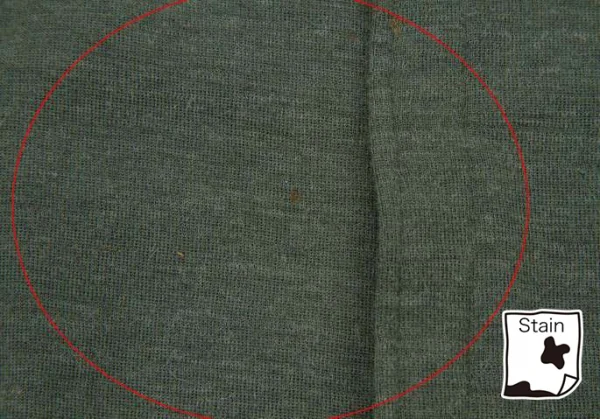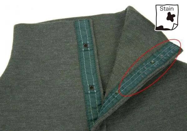 スナップボタン部分に汚れあり。前後身頃に点シミあり(写真参照)。その他は目立ったシミ、汚れ、ほつれ等なくいい状態です。