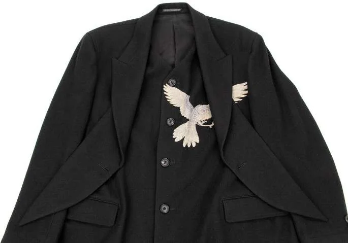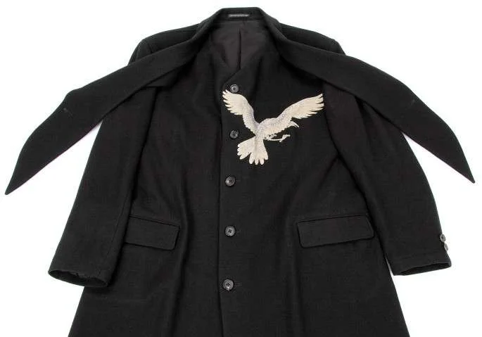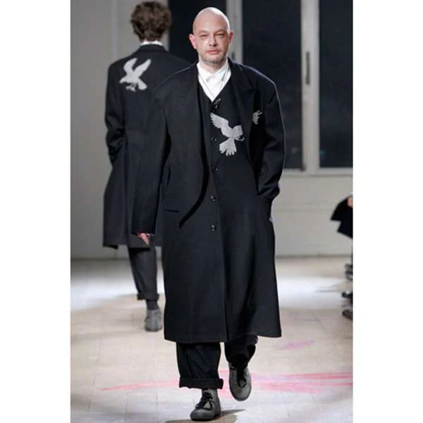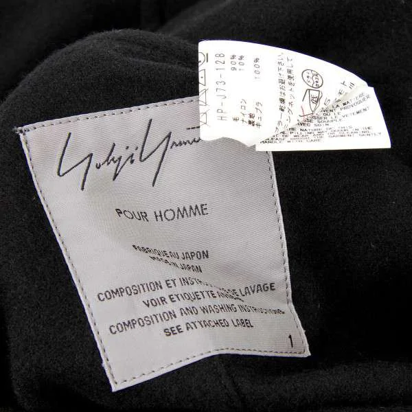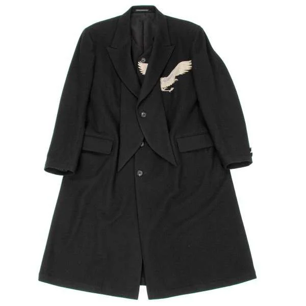 ヨウジヤマモト プールオム yohji yamamoto pour homme 鳥抜染ウールデザインロングコート 黒1