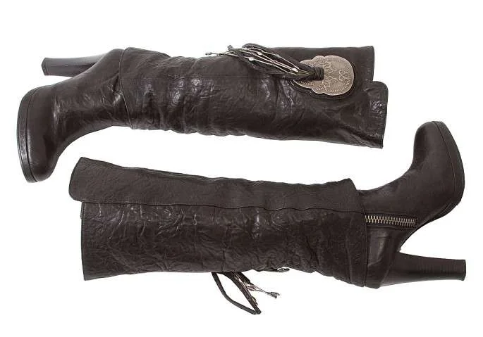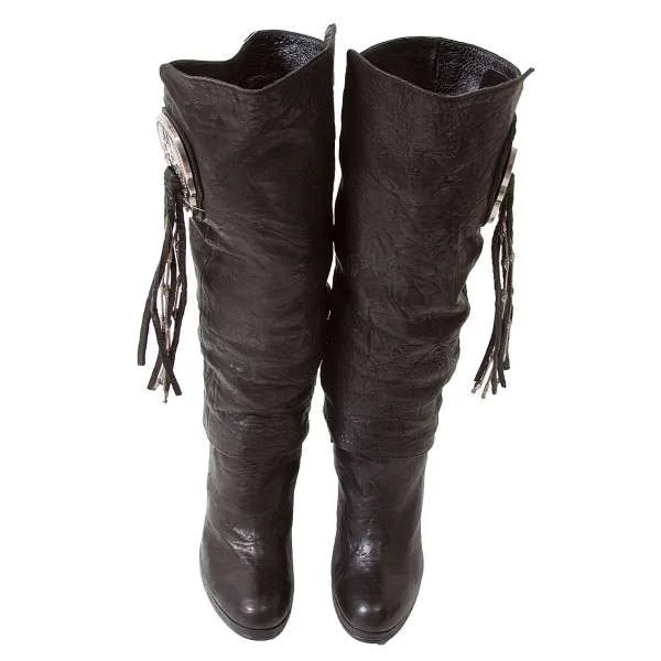 【SALE】トーマスワイルド THOMAS WYLDE スカルコンチョレイヤードレザーロングブーツ 黒8(25.5位)