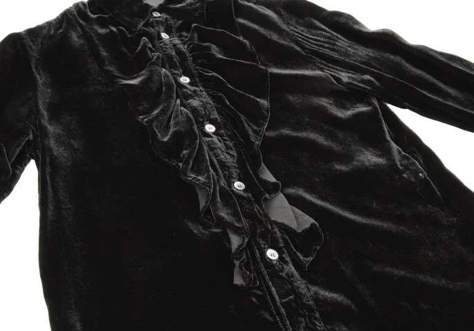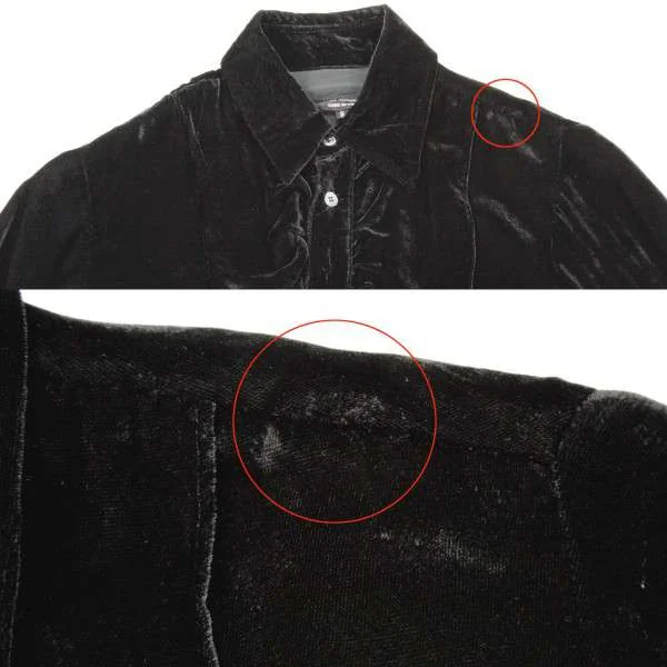 【SALE】ジュンヤワタナベ コムデギャルソンJUNYA WATANABE COMME des GARCONS 前立フリルベロア長袖シャツ 黒S