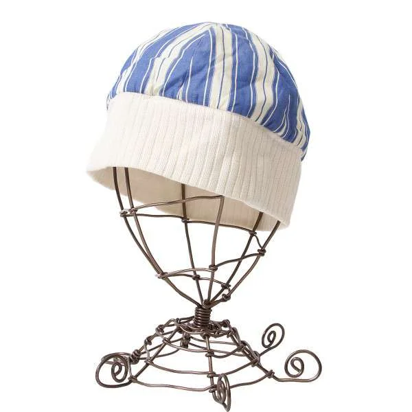 【SALE】ドルチェ&ガッバーナDOLCE&GABBANA リブ切替ストライプワッチキャップ 青クリームM