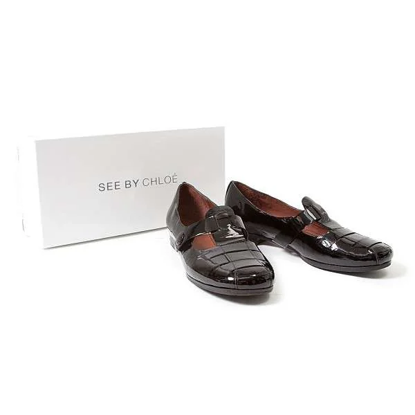 シーバイクロエ SEE BY CHLOE パテントレザーフラットシューズ 35.5 黒35.5(22,5〜23cm)