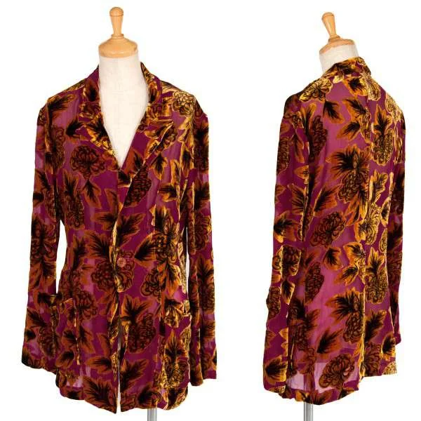 ヨウジヤマモト ファム yohji yamamoto FEMME シースルーベロアシャツジャケット 赤紫カラシ他S