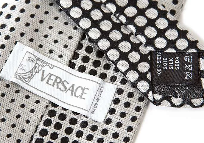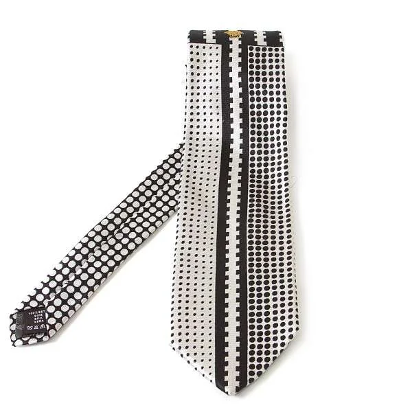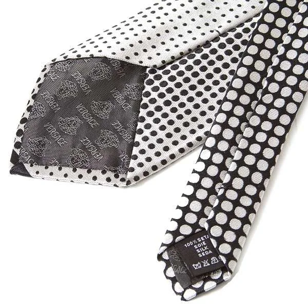ヴェルサーチVERSACE ドット柄シルクネクタイ 白 黒 黄