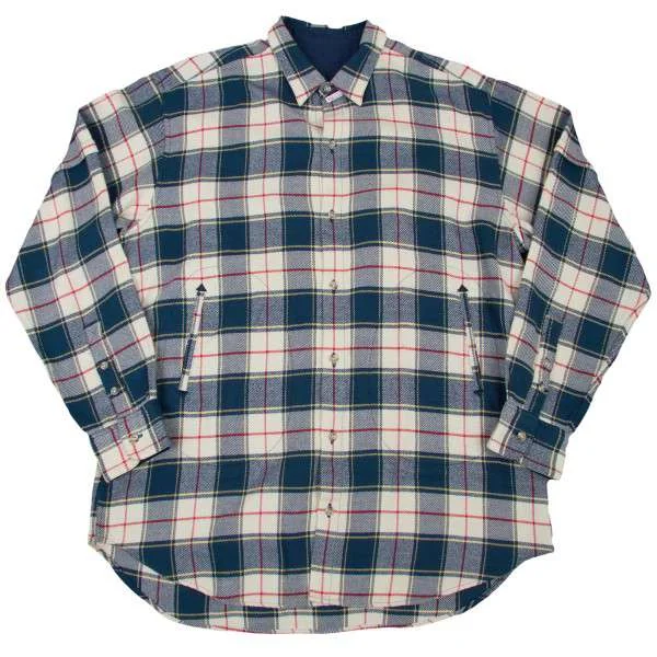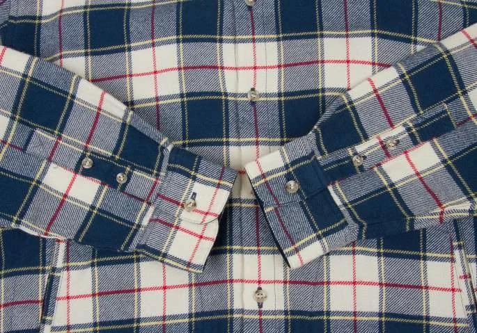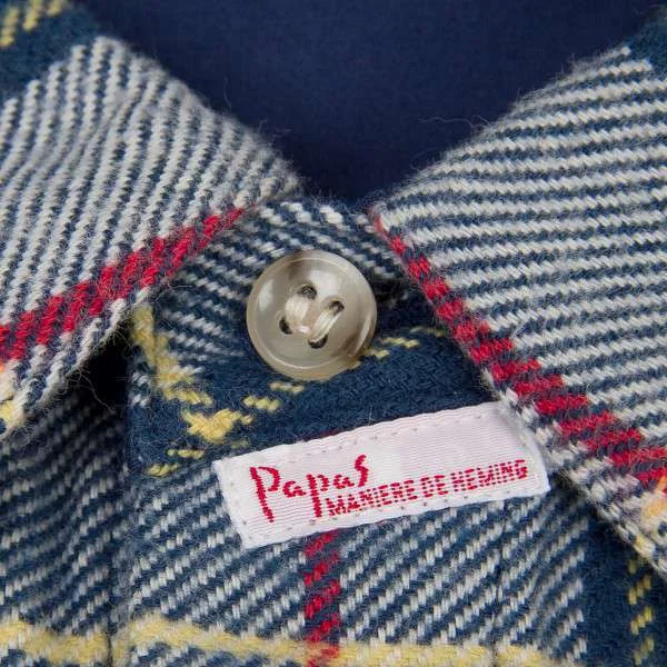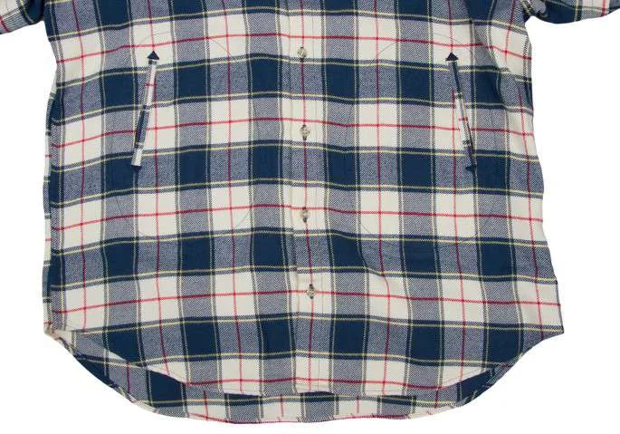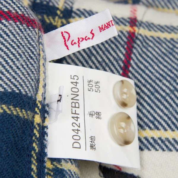 パパスPapas コットンチェックポケットネルシャツ 白紺L