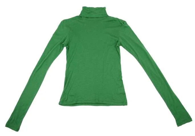 【SALE】イッセイミヤケ ミーISSEY MIYAKE me 薄手コットンタートルネックカットソー 緑S位