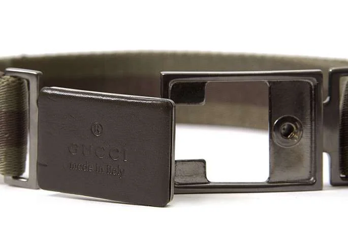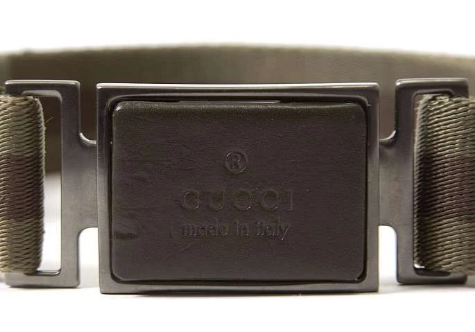 【SALE】グッチGUCCI メタルバックルナイロンベルト カーキ