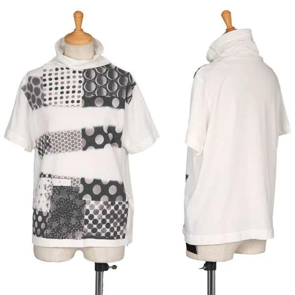 【SALE】プルドゥpour deux 天竺水玉バリエーションプリントハイネックプルオーバー 生成グレーM
