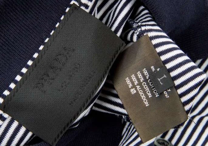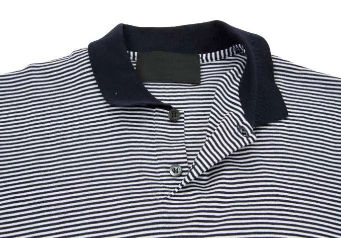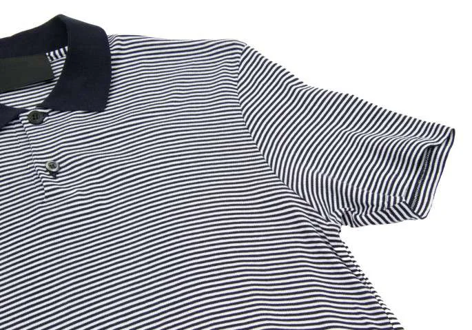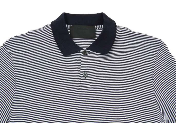 【SALE】プラダPRADA クレリック襟スムースボーダーポロシャツ 黒 白 紺L
