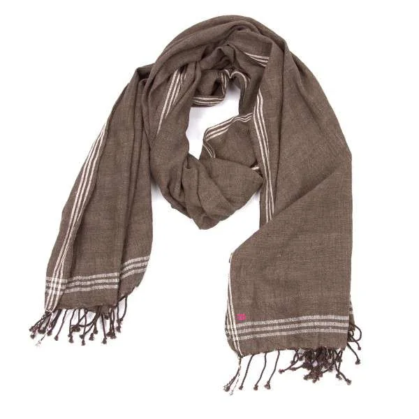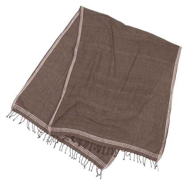 45rpm カディコットンストール 茶 白70㎝×193cm(フリンジ込)