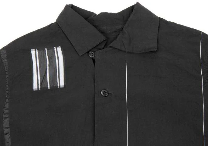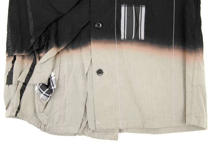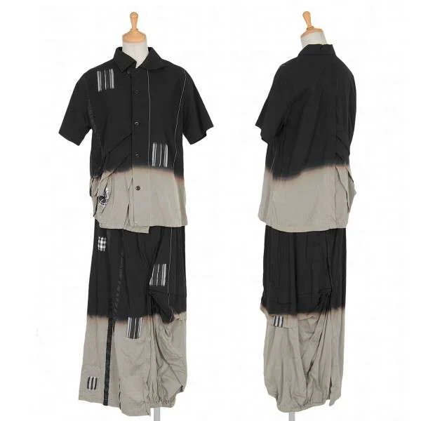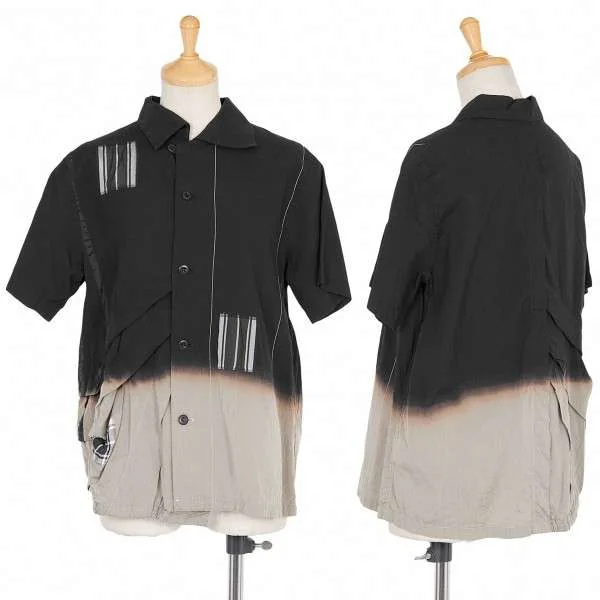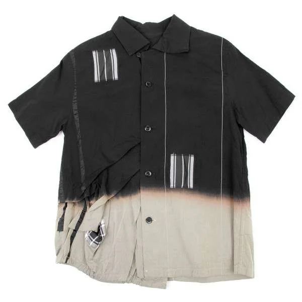 プルドゥ pour deux むら染めチェックパッチワーク半袖ブラウス 黒オフベージュM
