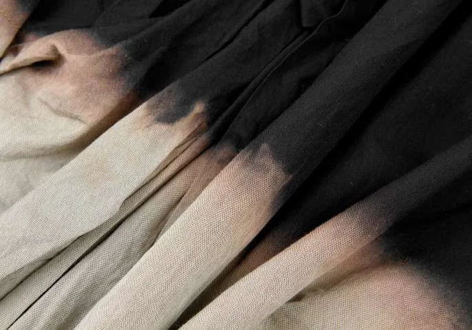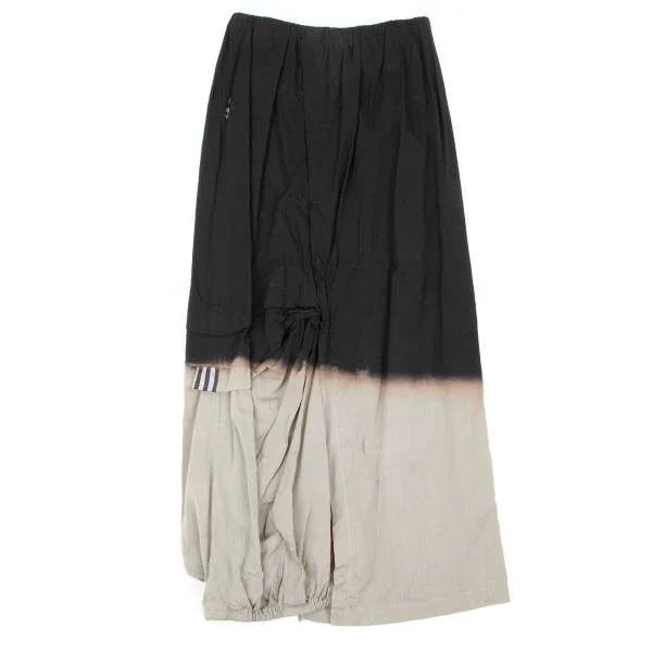 【SALE】プルドゥpour deux むら染めチェックパッチワークゴム入りスカート 黒オフベージュM