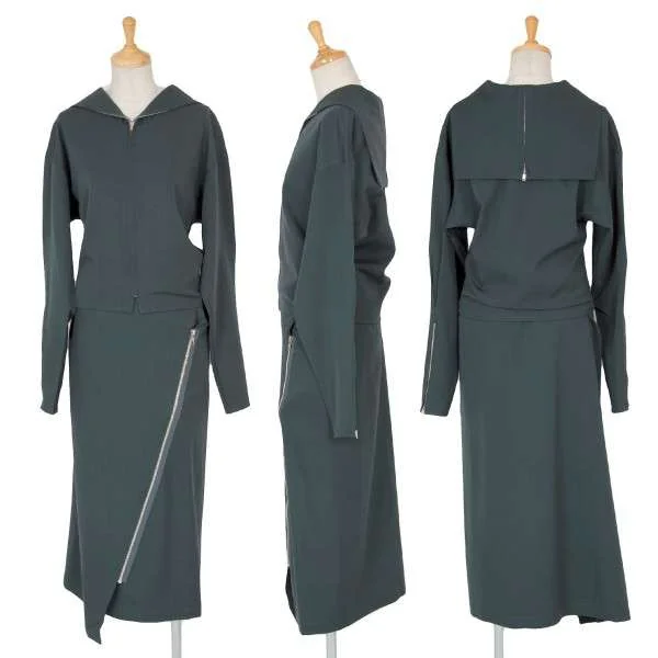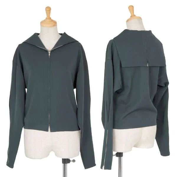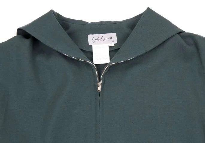 ヨウジヤマモトファムYohji Yamamoto FEMME セーラーカラーウールギャバジップブルゾン モスグリーンS