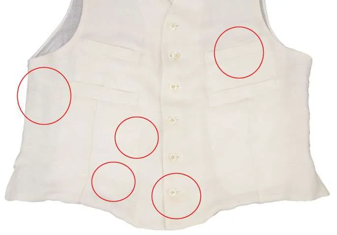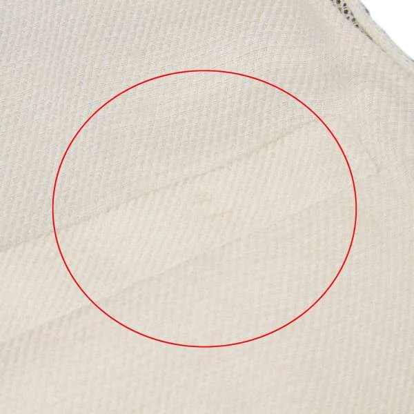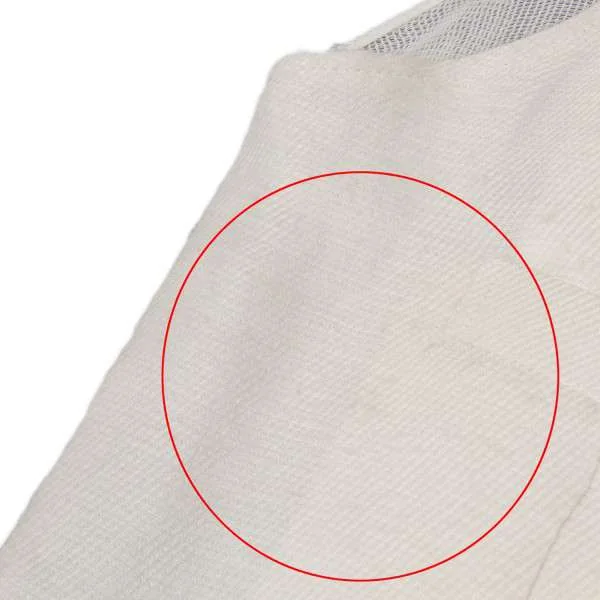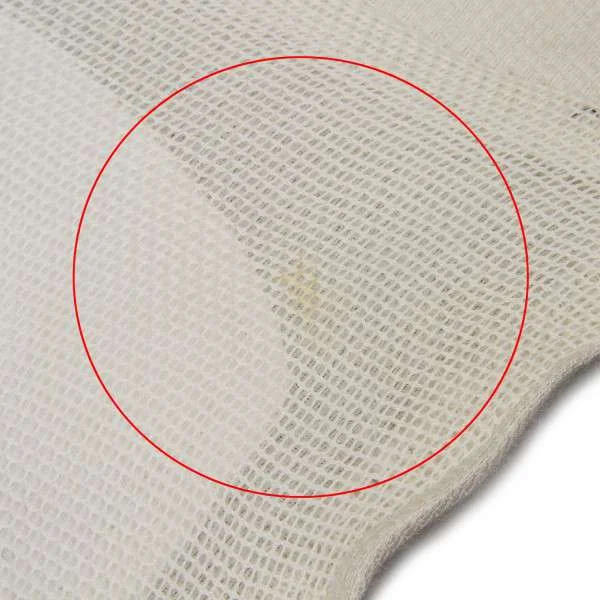 身頃にシミ多数あり。右前身頃サイドに擦れあり(写真参照)。後身頃メッシュ地に糸引きあり。クリーニング済み