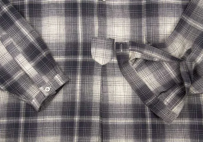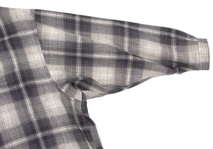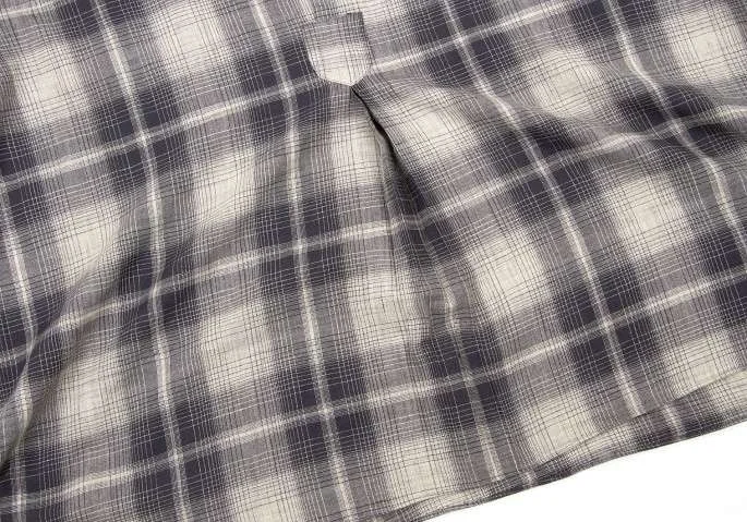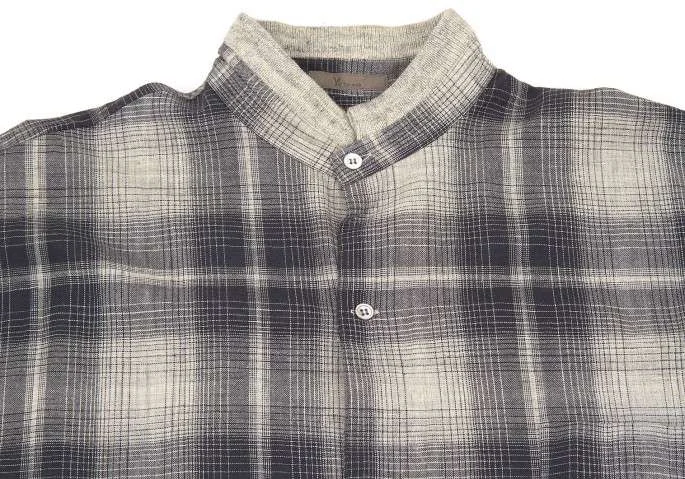 【SALE】ワイズフォーメンY's for men スタンドカラーセンタープリーツチェックウールシャツ 紺グレージュL位