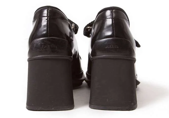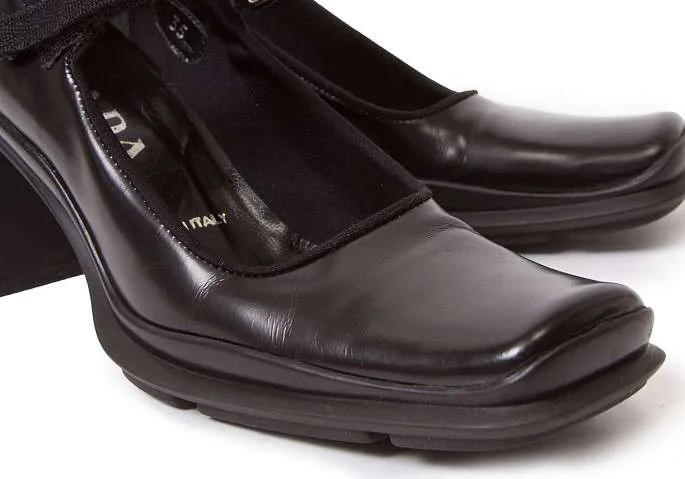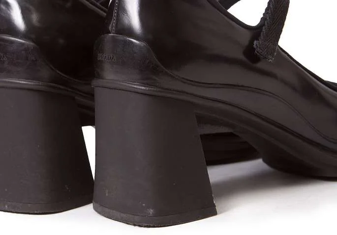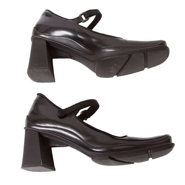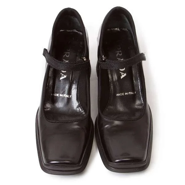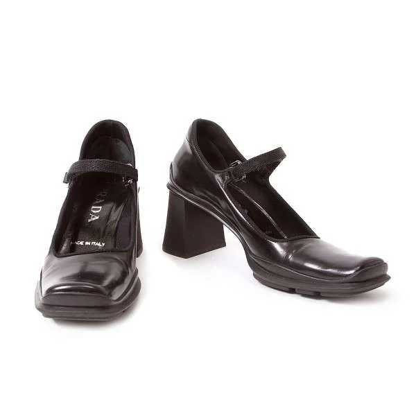 【SALE】プラダPRADA マジックテープベルトスクエアパンプス 黒35(22cm)