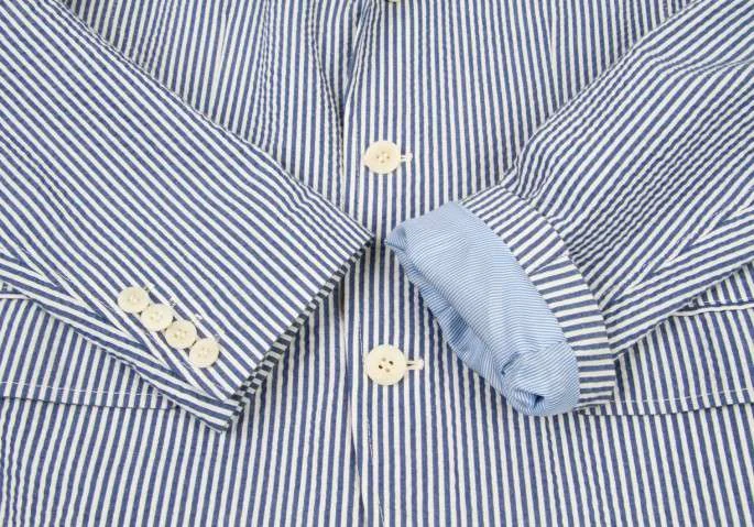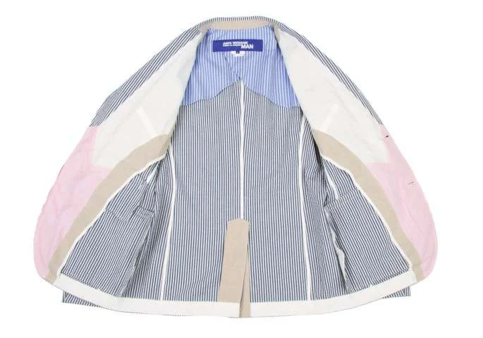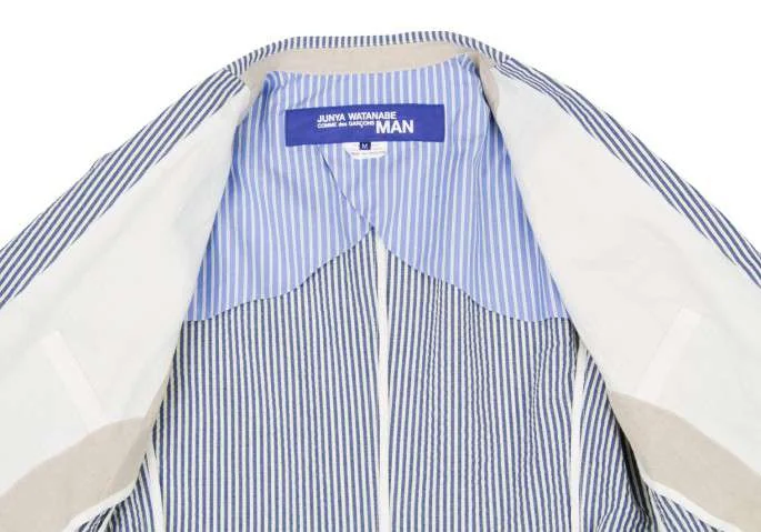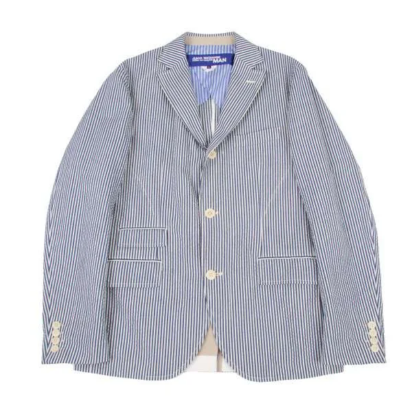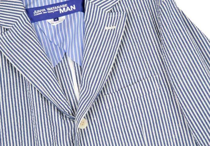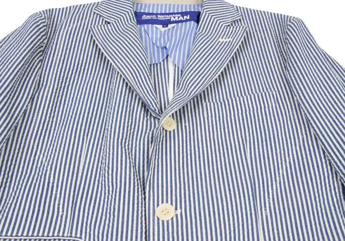 新品!ジュンヤワタナベマンコムデギャルソンJUNYA WATANABE MAN COMME des GARCONSシアサッカー地ストライプコットンジャケット 青白M