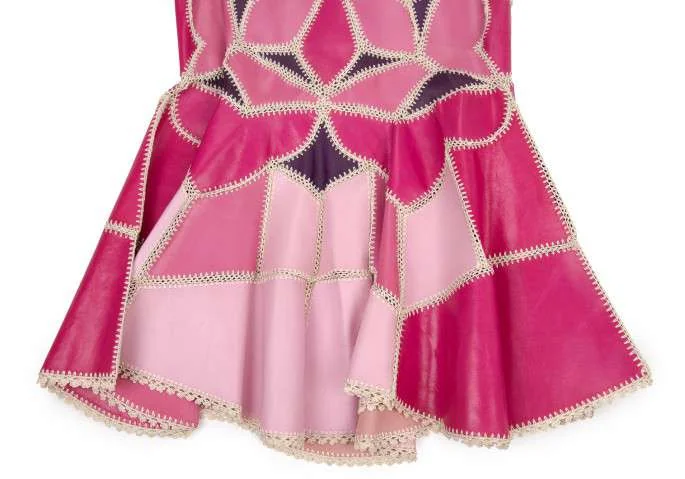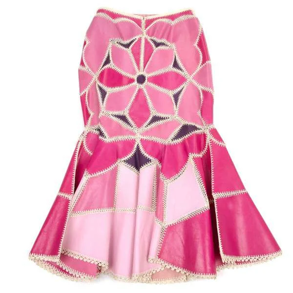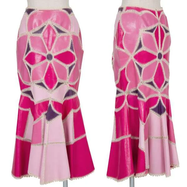 ケイタマルヤマKEITA MARUYAMA ラムレザーパッチワークスカート ピンク系S位