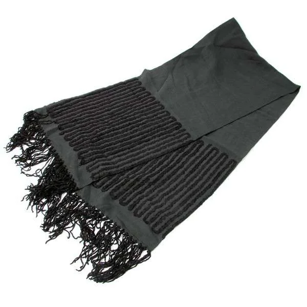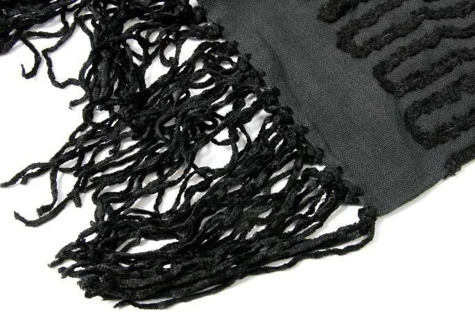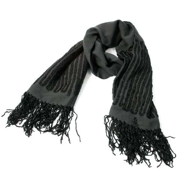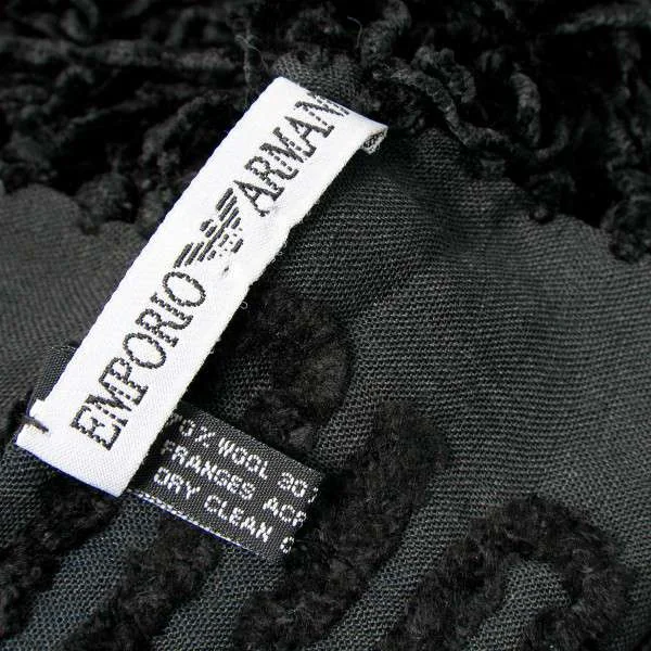 エンポリオ アルマーニ EMPORIO ARMANI フリンジデザインストール グレー黒29cm×160cm(フリンジ込)