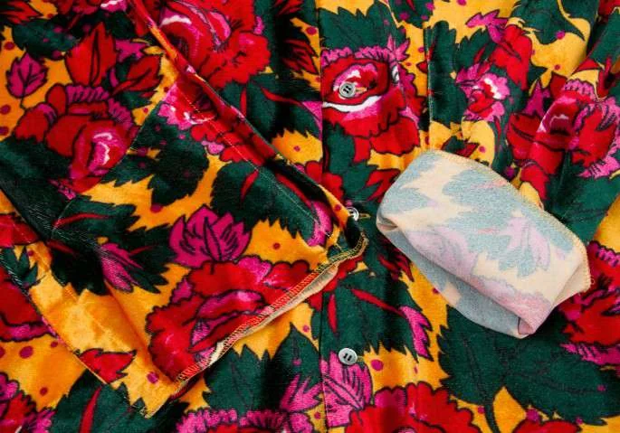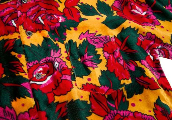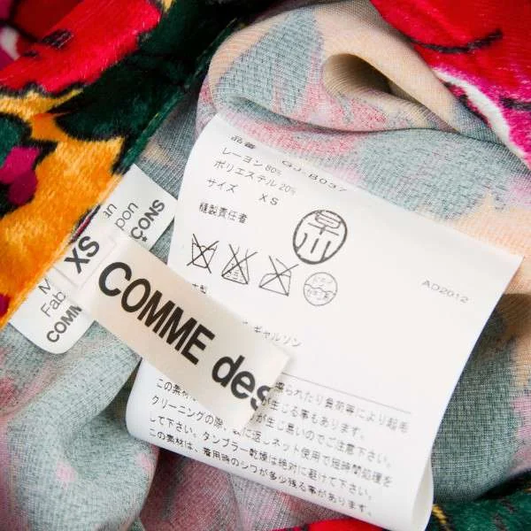 【SALE】コムデギャルソンCOMME des GARCONS 花柄プリントベロアシャツ 赤オレンジ緑XS