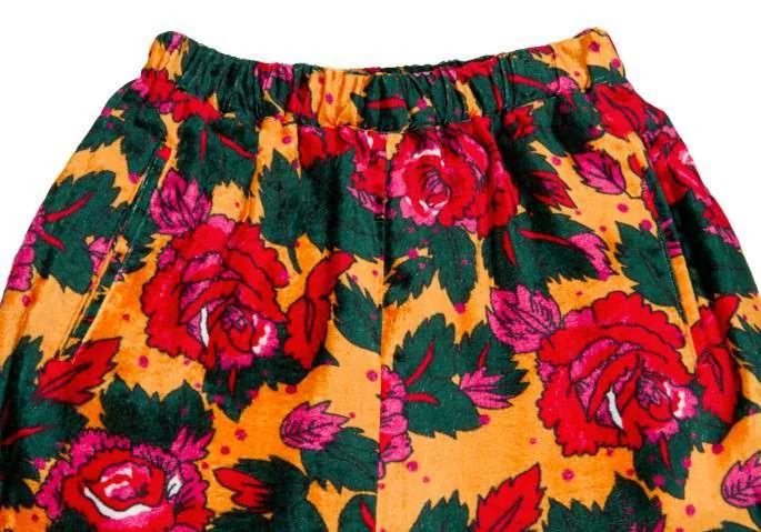 【SALE】コムデギャルソンCOMME des GARCONS 花柄プリントベロアペンギンパンツ 赤オレンジ緑XS