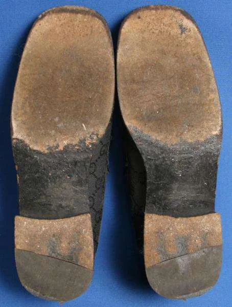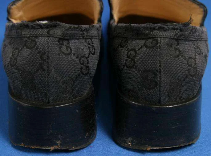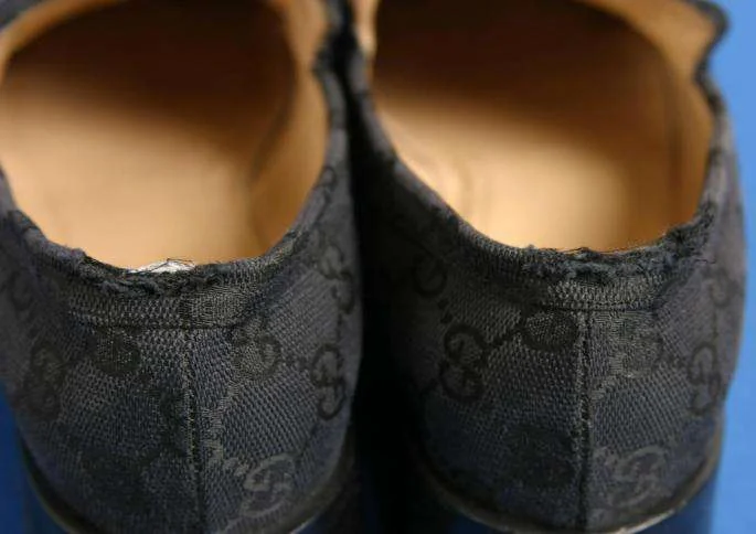 かかと部分の履き口が少し解れありです(5枚目写真参照)。甲部分横に少し切れが入っていますが、広がる感じでは無いようです(9枚目写真参照)。