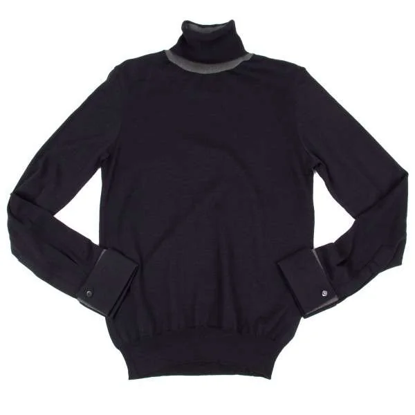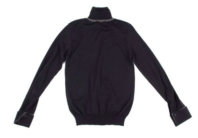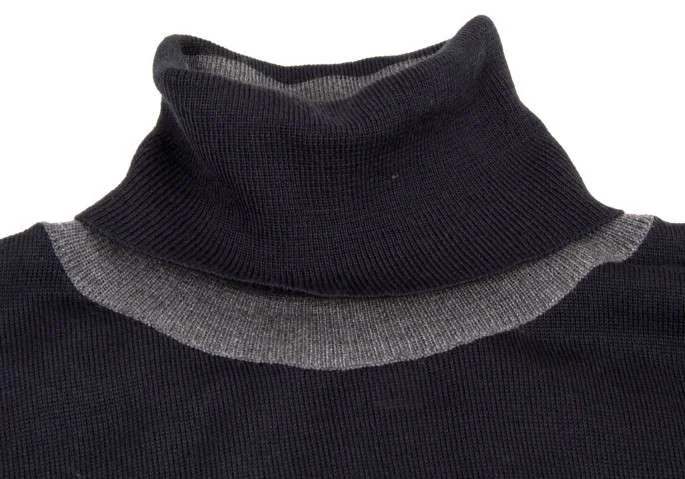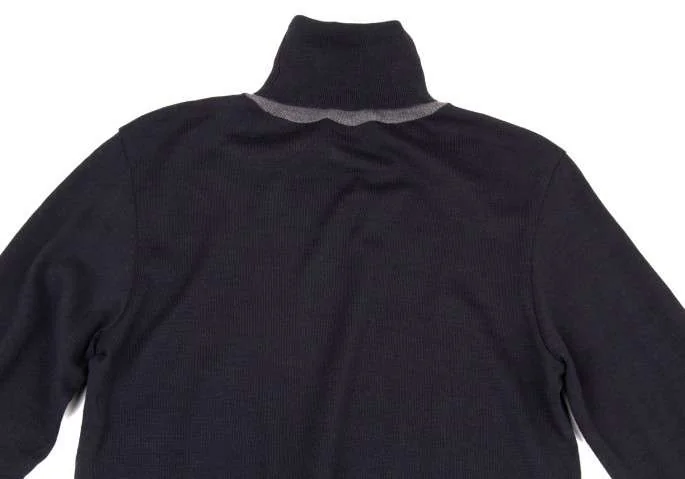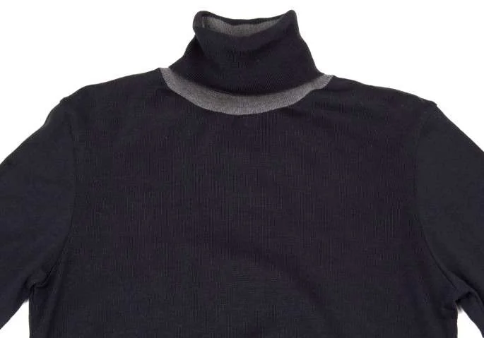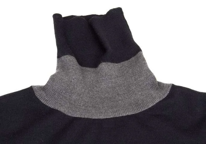 ミュウミュウmiumiu 袖折り返しデザインハイネックニット 紺グレーM