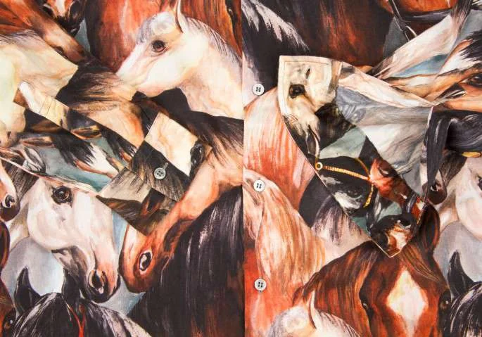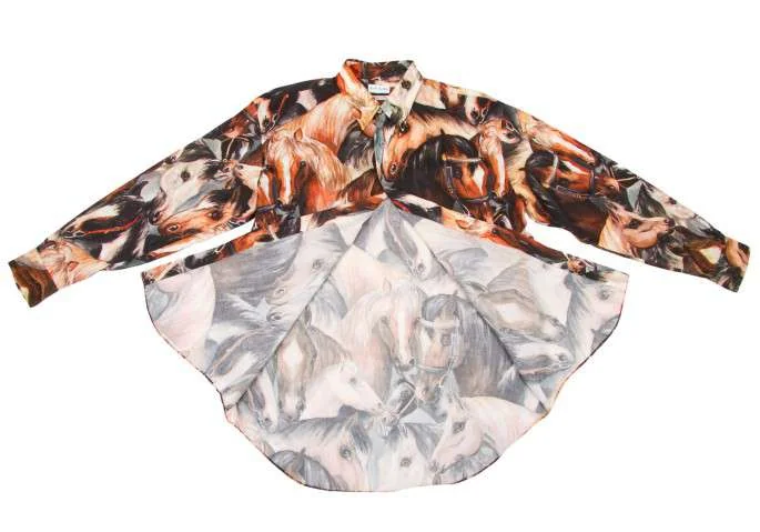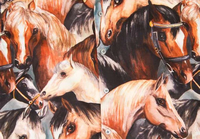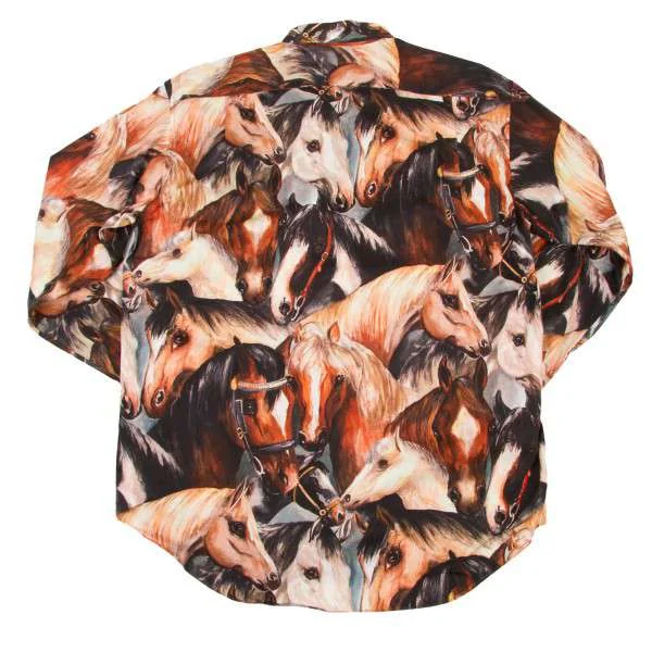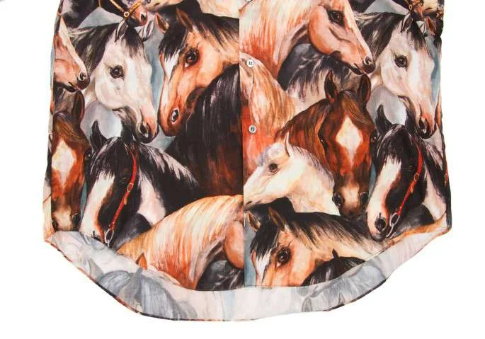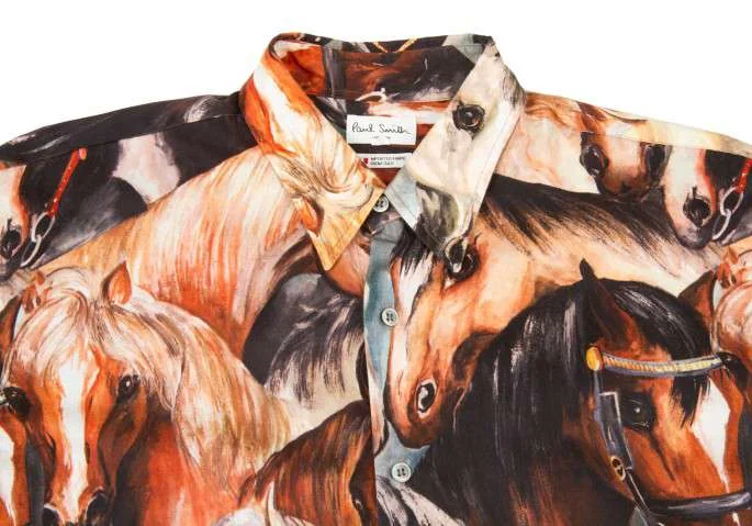 ポールスミスpaul smith ONDON ホースプリントコットンシャツ 茶系L