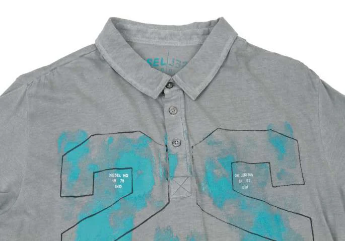 【SALE】ディーゼルDIESEL ペイントプリントカット地ポロシャツ グレーXL