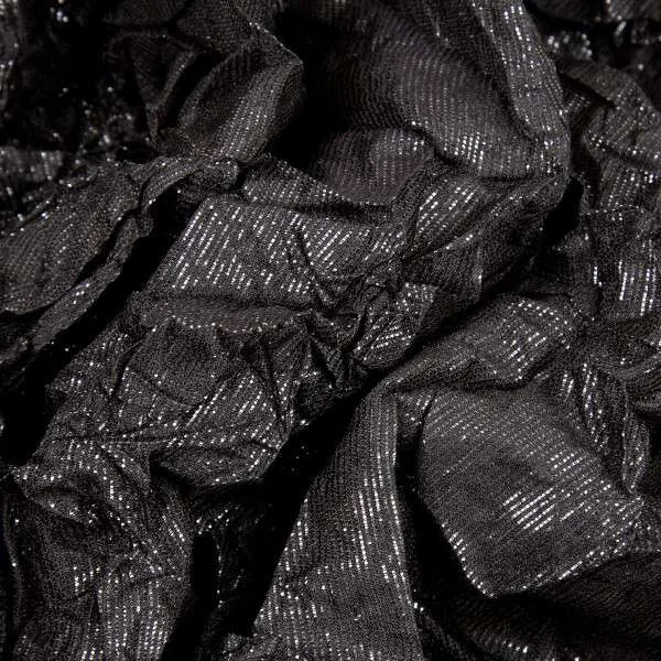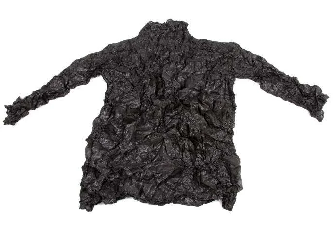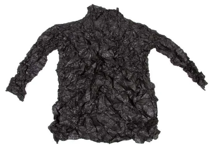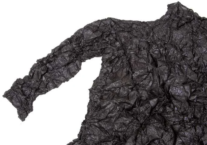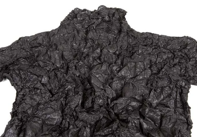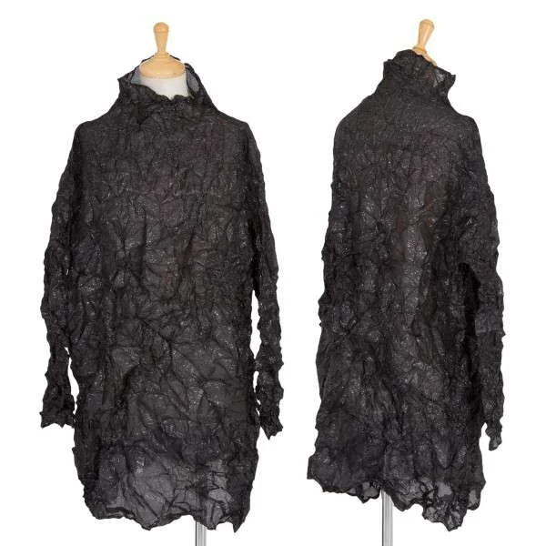 イッセイミヤケペルマネンテISSEY MIYAKEPwRANwNTw シワ加工シルクメタリックトップス 黒M