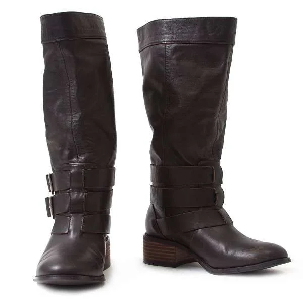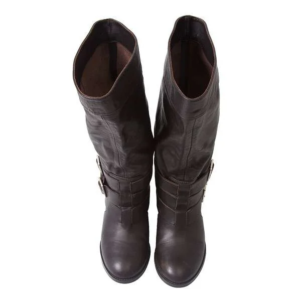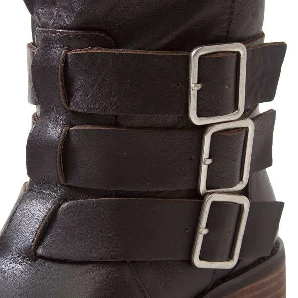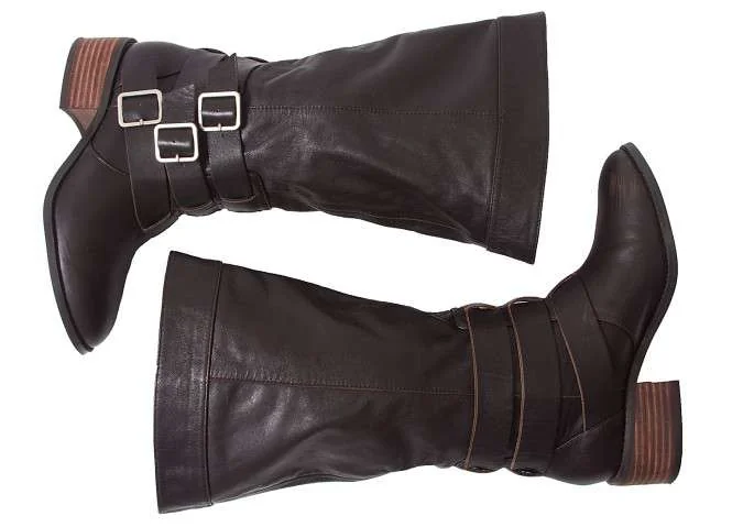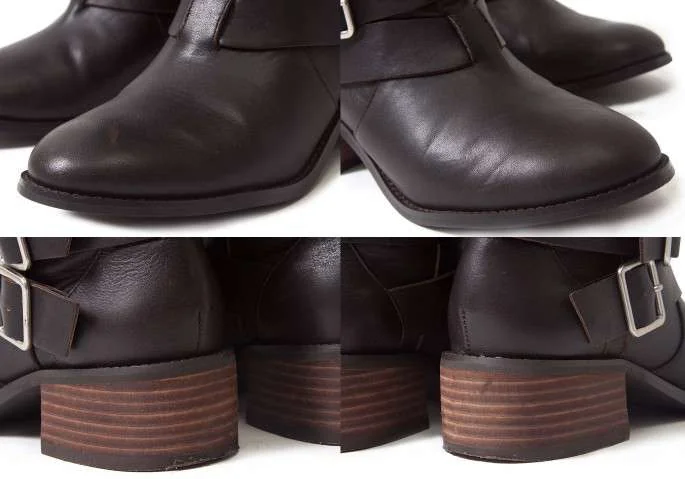 【SALE】スナオクワハラsunaokuwahara ミドル丈ベルトレザーブーツ こげ茶S