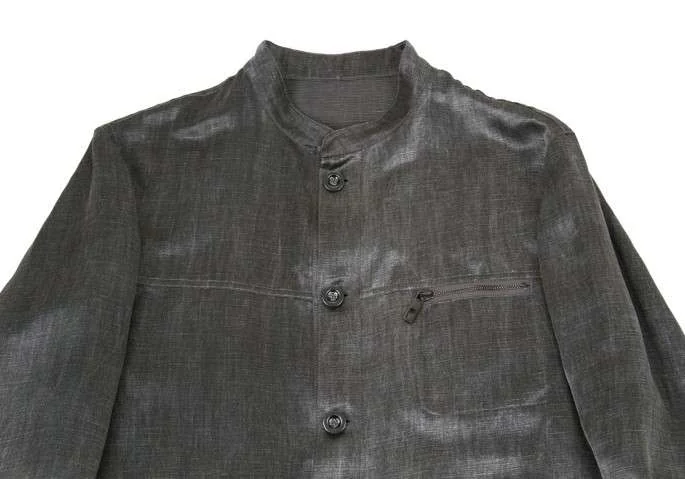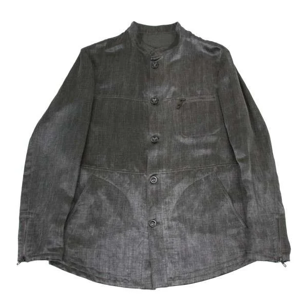 【SALE】黒タグ ジョルジオ アルマーニGIORGIO ARMANI BORGO21 リネンシルクスタンドカラージャケット シルバー52