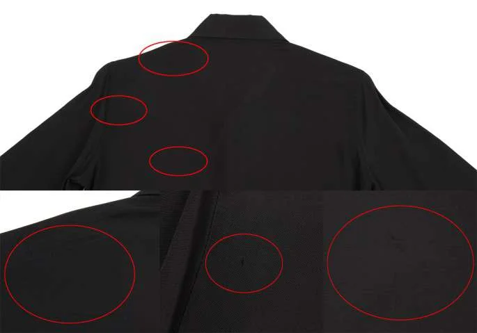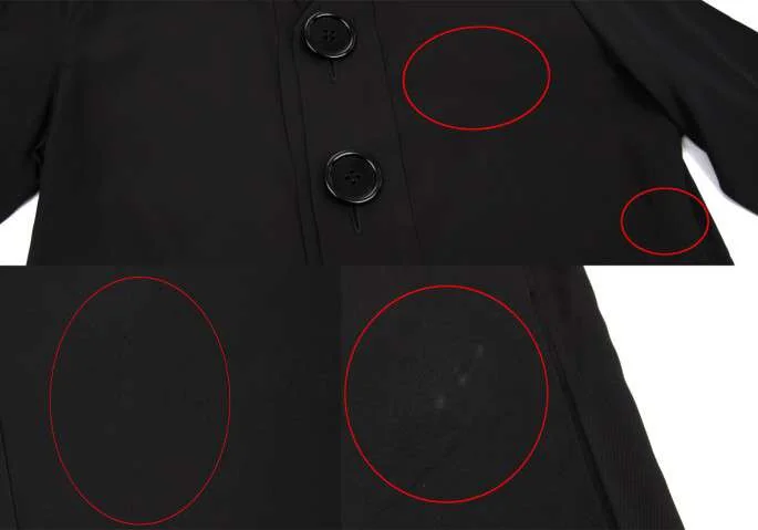 襟裏に薄汚れ、身頃に引っ掛けダメージ、多数あり。袖口、袖口裏に汚れ、変色あり(写真参照)。クリーニング済み