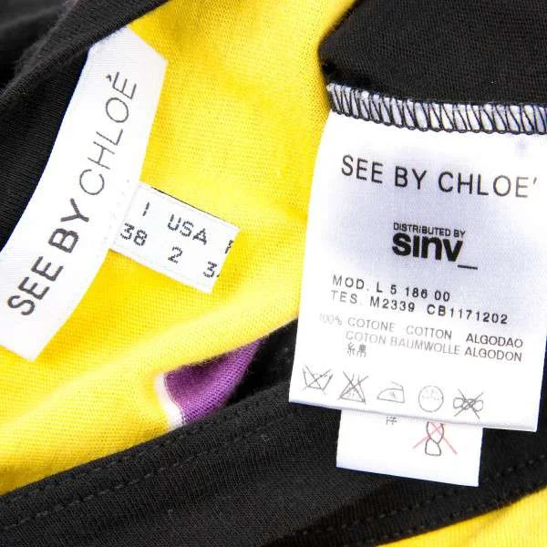 【SALE】シーバイクロエSEE BY CHLOE 配色デザインコットンカットソーマキシワンピース 黒マルチ38