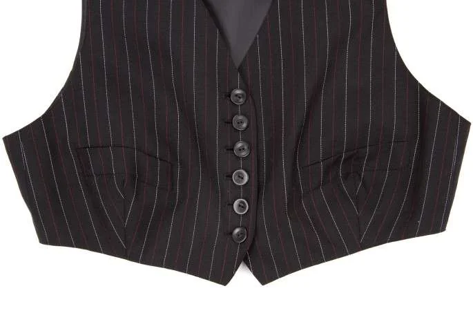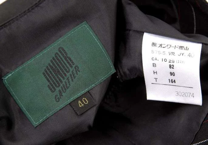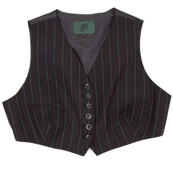 【SALE】ジュニアゴルチエJUNIOR GAULTIER ストライプショートコンパクトウールジレ 黒白エンジ40