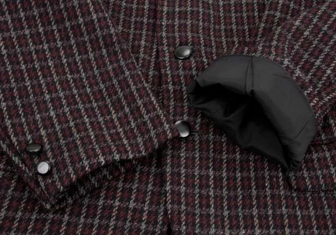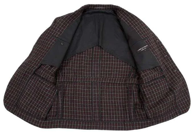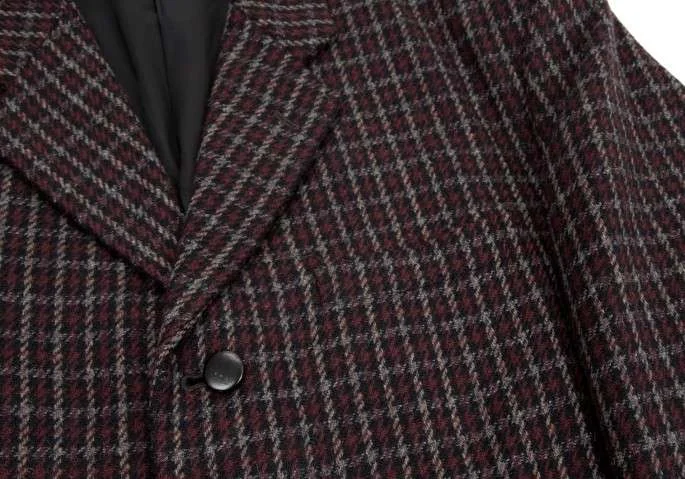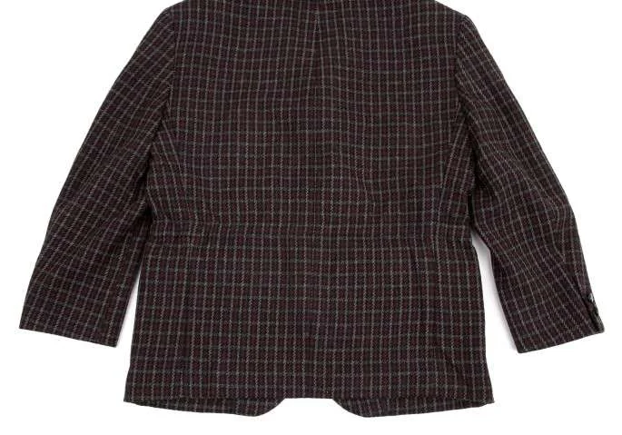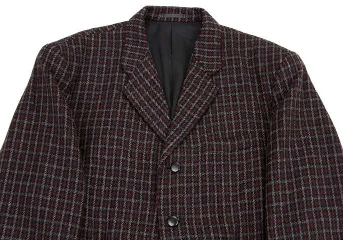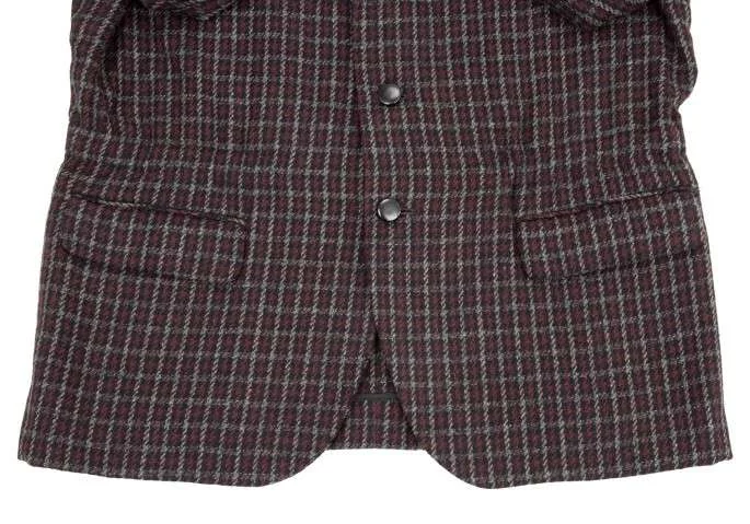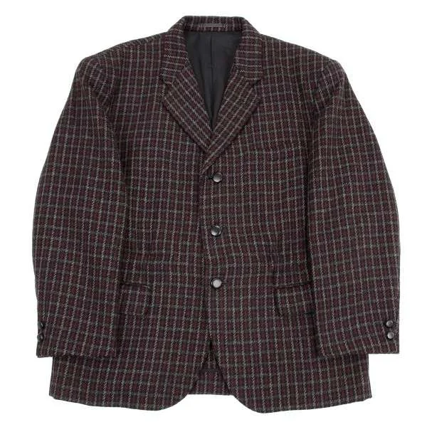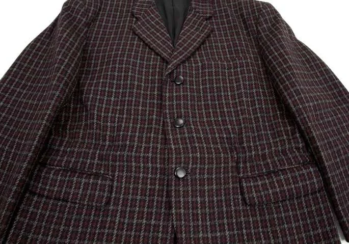 コムデギャルソンオムプリュスCOMME des GARCONS HOMME PLU チェックウールジャケット 紺エンジ他S