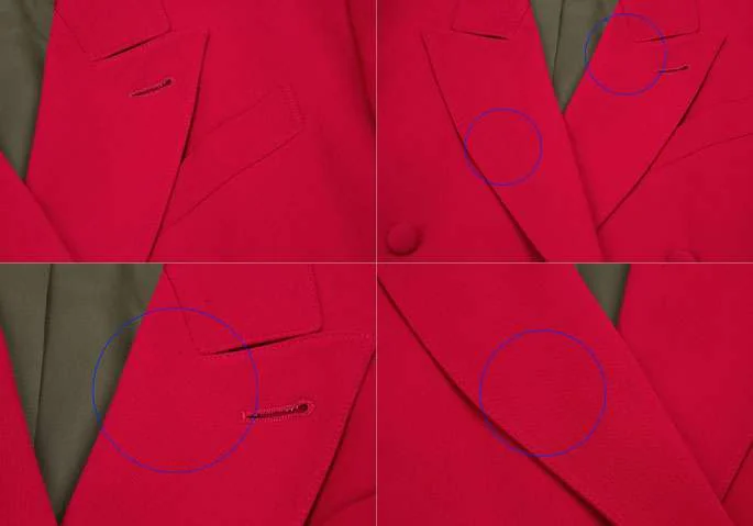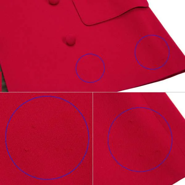 前身頃裾、後身頃 裾左に引っ掛け、ラペルに点シミ多数あり。(写真参照)その他に汚れはありません。
