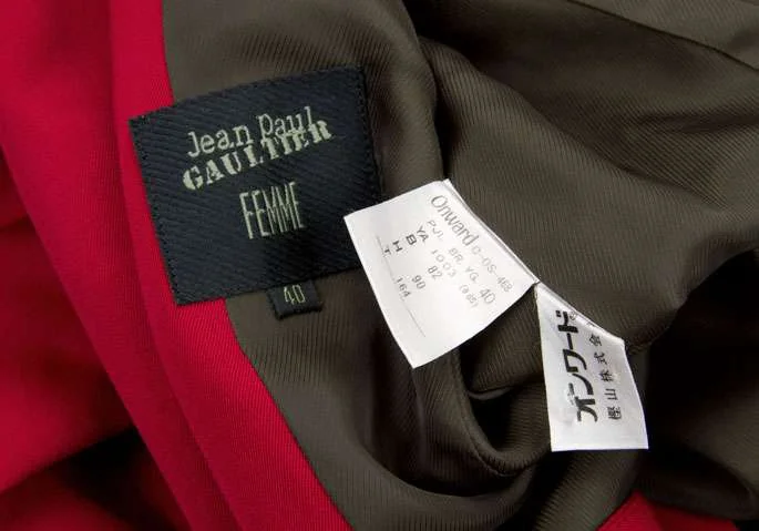 【SALE】ジャンポールゴルチエ ファムJean Paul GAULTIER FEMME 裏地プリントデザインダブルボタンジャケット 赤40