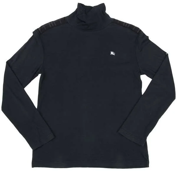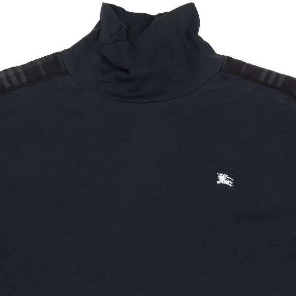 バーバリーブラックレーベルBURBERRY BLACK LABEL チェック切替ハイネックコットン長袖カットソー 紺グレー3