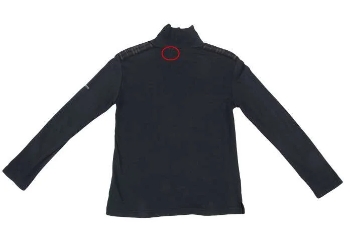 着用感あり。首元タグに修理跡あり(写真参照)。肩から首元にかけて、色褪せあり。クリーニング済み