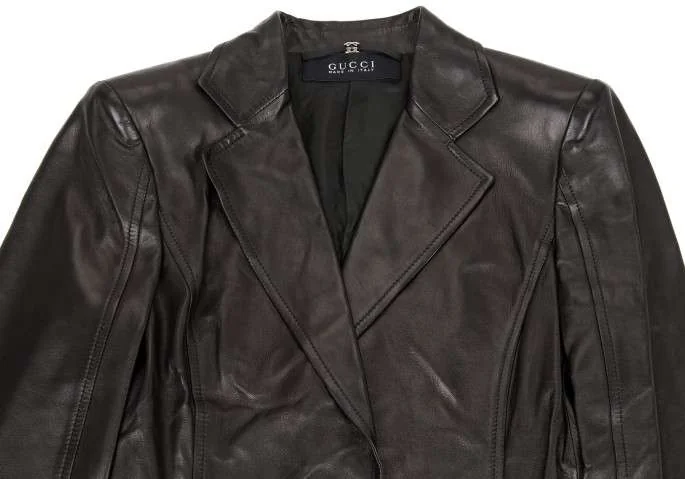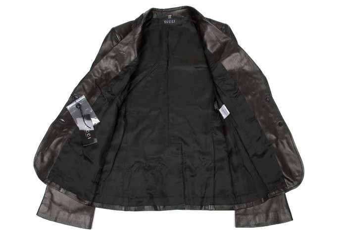 新品!【SALE】新品!グッチGUCCI ラムレザーテーラードジャケット 黒40