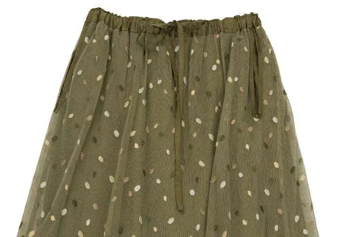 【SALE】イッセイミヤケ ペルマネンテISSEY MIYAKE PERMANENTE 刺繍ネットレイヤードスカート モスグリーン他2