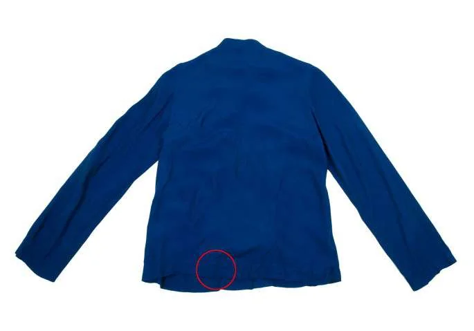ジャケット:襟裏に薄汚れあり。後身頃裾に薄シミあり(写真参照)。後ろ首元に少々擦れあり。 スカート:裏側ステッチに糸つれあり。後身頃に解れあり(写真参照)。ヒップ辺りに少々擦れあり。クリーニング済み