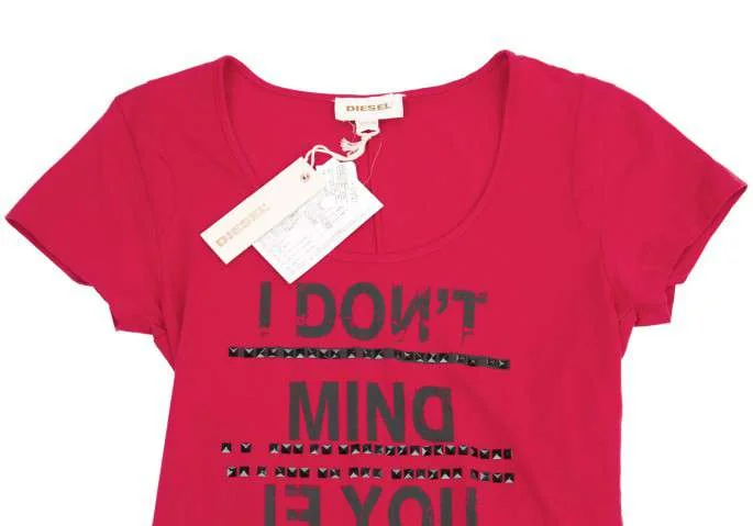 新品ですが…!ディーゼルDIESEL スタッズプリント半袖カットソー 赤黒XS