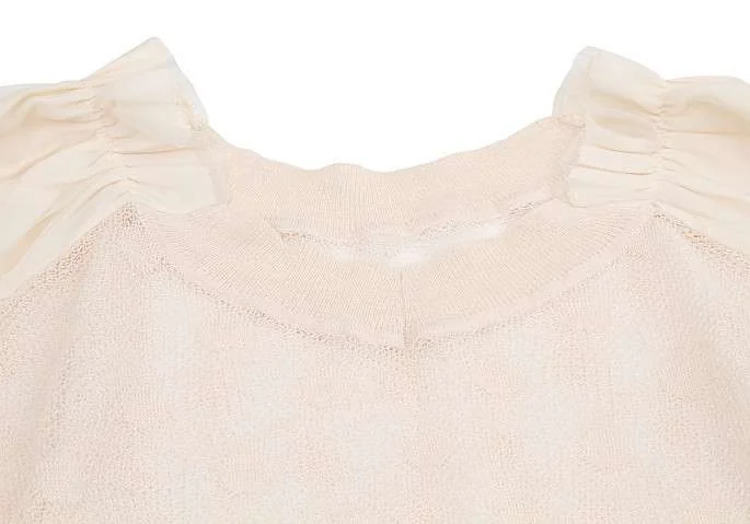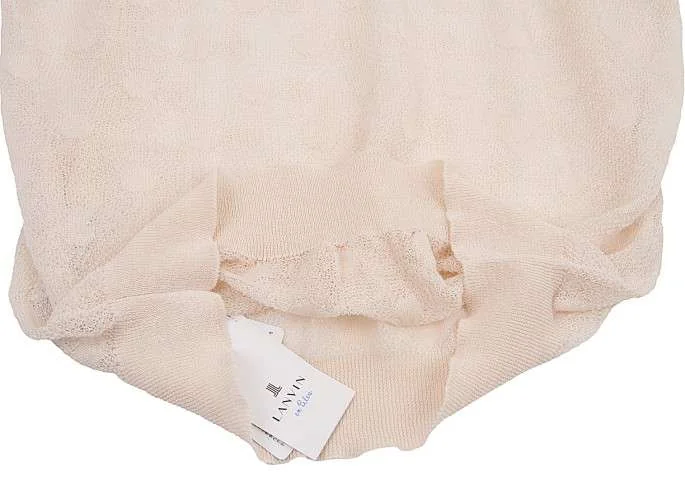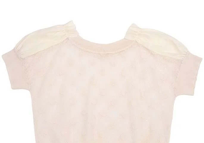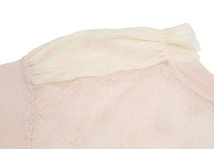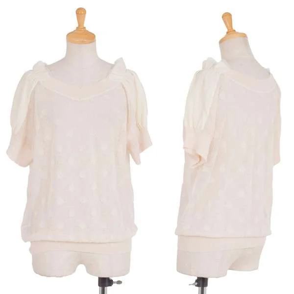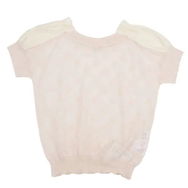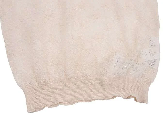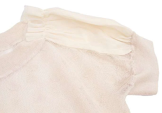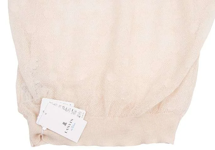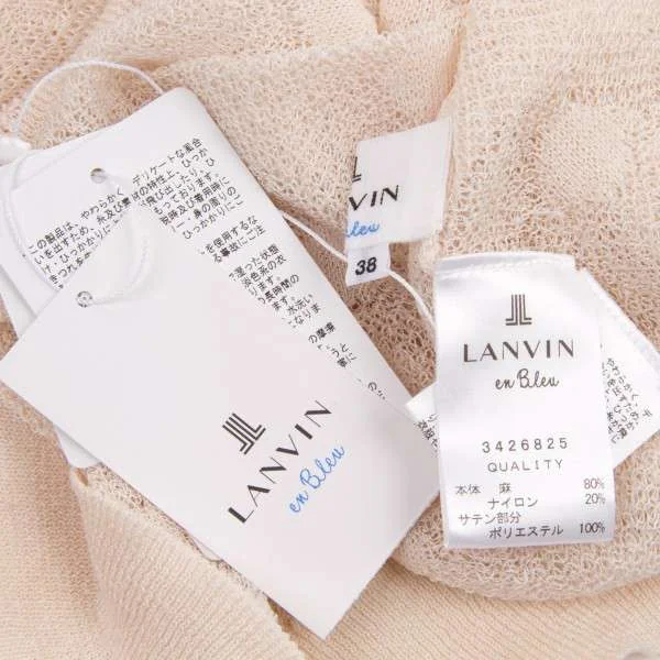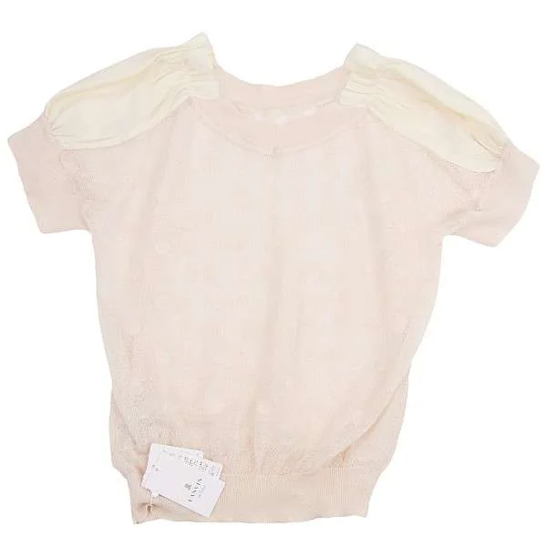 新品!ランバンオンブルーLANVIN en Bleu パフスリーブ袖切り替えドットリネンナイロン半袖カットソー ベージュ薄ピンク38